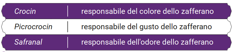 Il sapore amaro dello zafferano come materiale vegetale è legato alla picrocrocina. La picrocrocina costituisce l’aroma dominante dello zafferano.