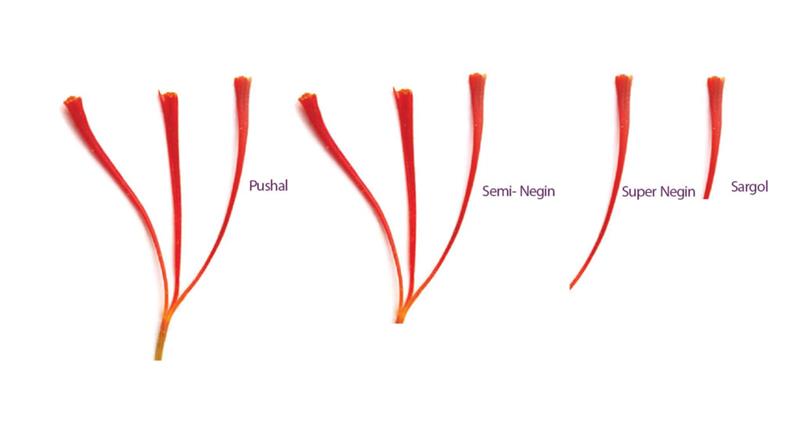 Sargol, Negin, Semi-Negin e Pushal sono parti diverse dello stigma che hanno nomi diversi a seconda della zona di taglio.