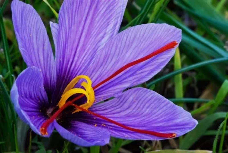 From the middle of a bulb, which is covered with brown layers, a green stem with a number of narrow and long leaves emerges and from the center of the leaves, a flowering stem appears leading to one to three flowers. Saffron is propagated through its bulb, and the bigger the bulb, the higher the quality of the saffron can be produced. Saffron is an autumn plant whose flowers open in the cold and at sunrise, and farmers have little time to harvest it. The flowers have 6 purple petals, which may be flowery or purple in some species.